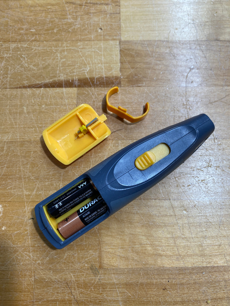 This fine tipped thread burning tool works best for tiny flies size #16 and down for those times when you need to clear the hook eye or burn off an errant piece of material. powered by 2 AAA batteries. Includes a spare tip.