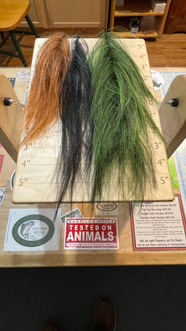 In my testing of various sized prototypes I discovered a Brush about 10 inches in length is about all the hair that can be handled without impossible frustration. I also discovered it only takes about 5 wraps of these Ultra Long Fibered Brushes to create perfect Hollow tied flies using a total of about 20 wraps of various length fibers with the longest fibers shrouding the rest of the fly.